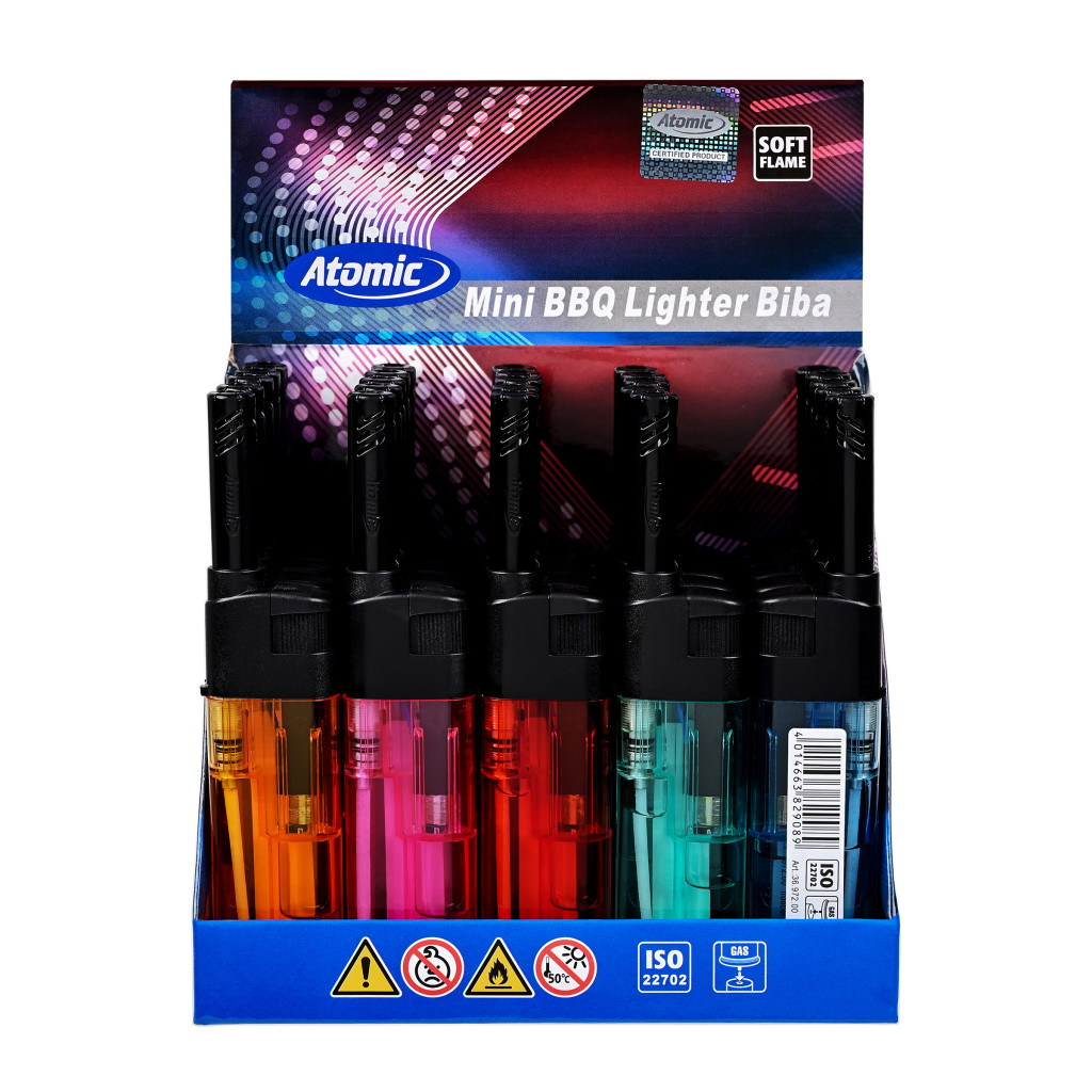 Az Atomic Biba mini tűzhelygyújtó kompakt méretének és praktikus kialakításának köszönhetően tökéletes választás a mindennapi használatra. Legyen szó gyertyákról, mécsesekről vagy a konyhai tűzhelyről, ez a megbízható eszköz egyszerűen kezelhető. Az átlátszó, színes tartályos gyújtók 25 darabos, gazdaságos kínáló display kiszerelésben érhetők el.